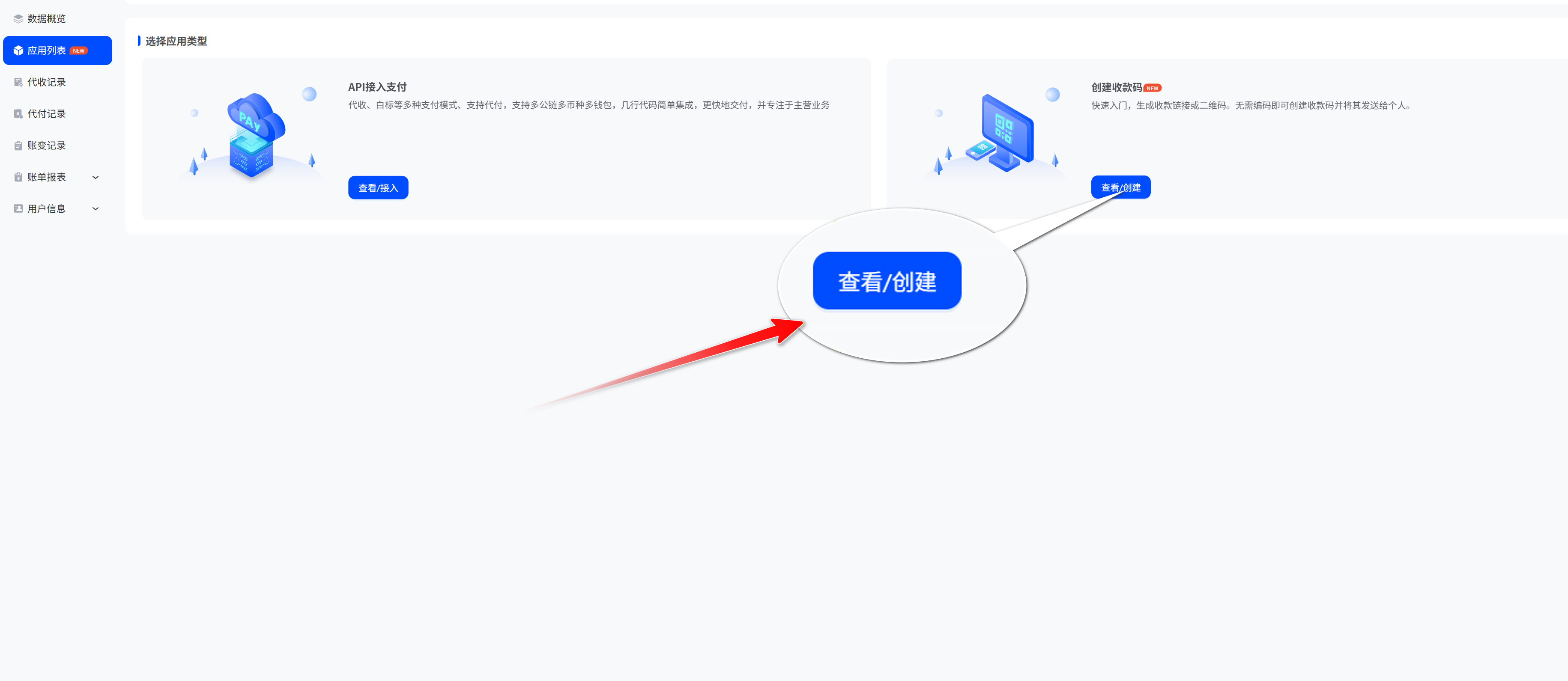 - 选择创建收款码,点击“创建”