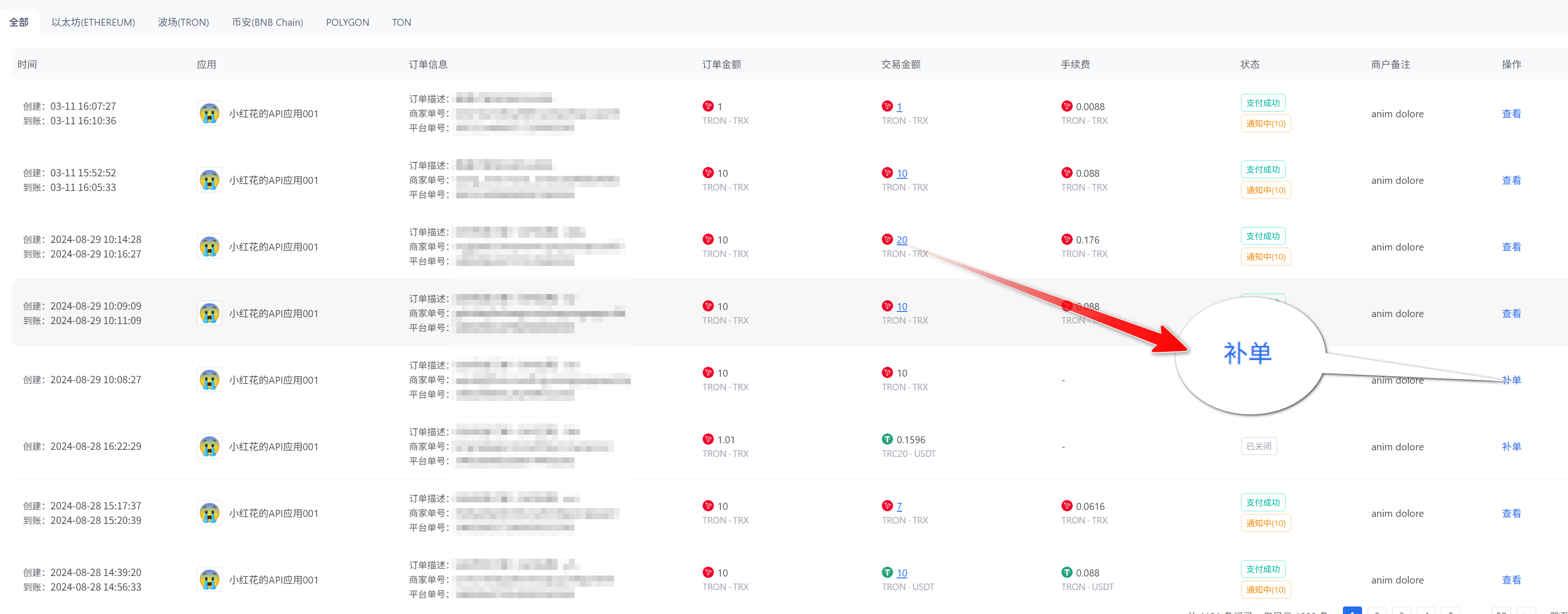 - 补单成功后,订单状态会变更为支付成功,系统会将补单哈希金额回调到商户回调接收地址