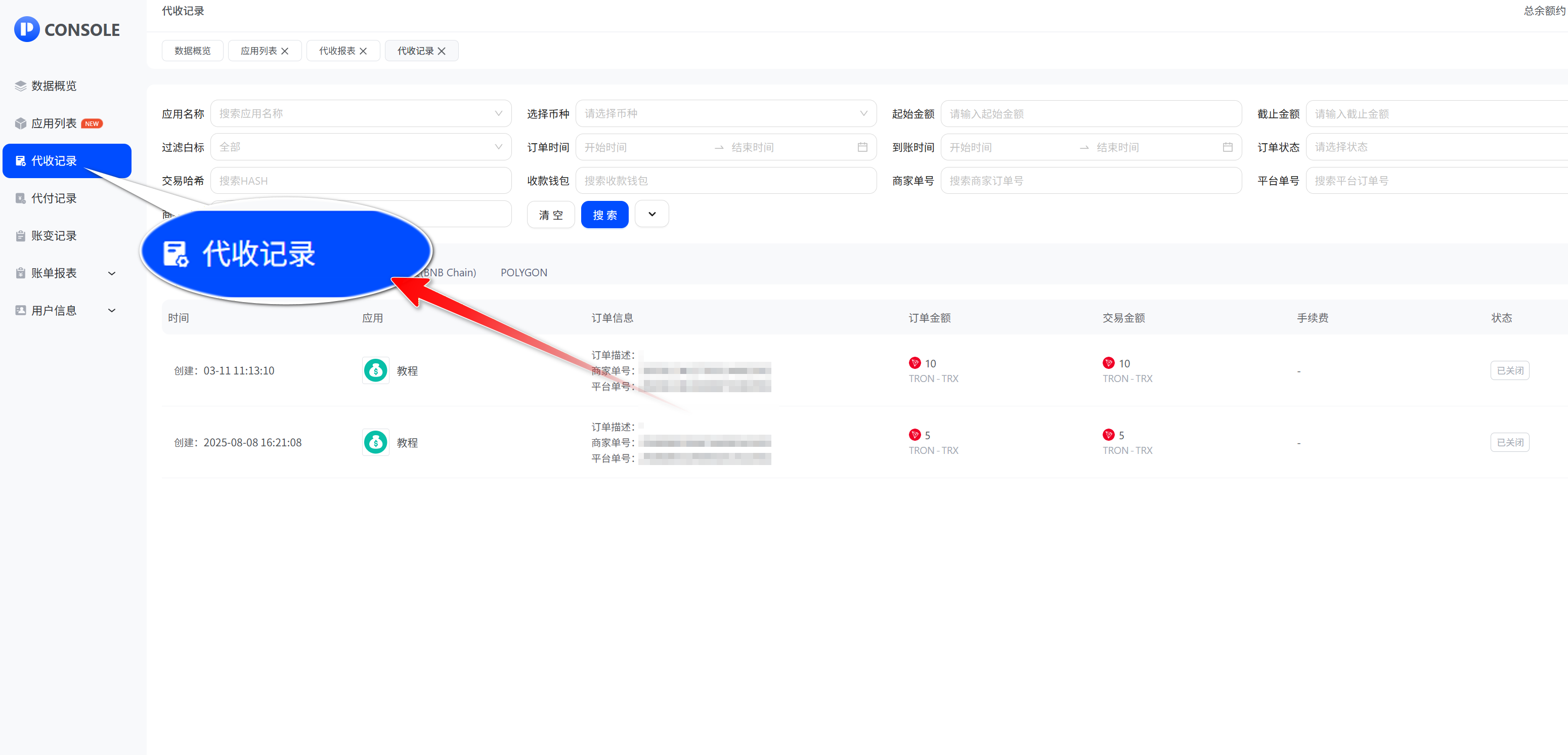 在平台代收订单中,若用户在订单超时关闭后支付,商户需进行补单操作,完成订单,以下为补单操作教程: